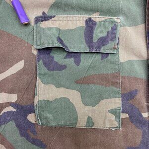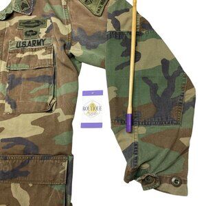 Vintage US ARMY Combat BDU Woodland Camo Field Jacket Shirt Ironside Patches