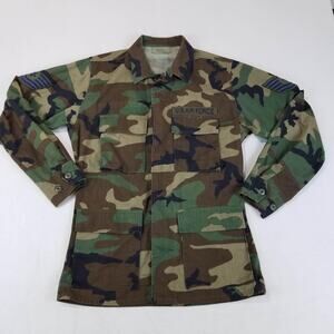 Vintage U.S. Air Force BDU Coat Mens Small Regular Woodland Camo Patches 90s