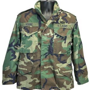 Vintage US Army Paratrooper Hooded Field Coat Camouflage Green S Small Short