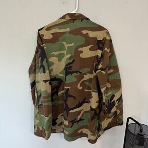 Vintage U.S. Army Woodland Camo BDU Combat Jacket Size Large Regular w/ Patches