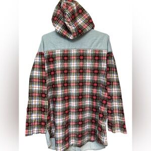 Vintage US Boys Women’s Plaid Sleeve Denim Hoodie. Size medium. Pearlized snap buttons. Stylish denim hoodie with plaid sleeves. Features a button-up front and hood. Amazing condition. From 1992.