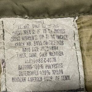 Vintage US Military Liner Coat Cold Weather Mens Small Olive Green Quilted 80s