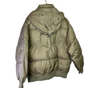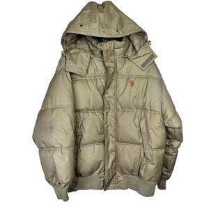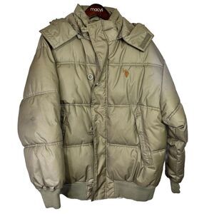 Vintage US Polo Assn Heavy Puffer Jacket Mens Large Beige Zip Button Close -Hood