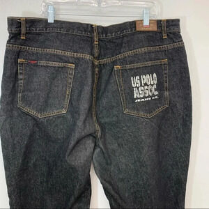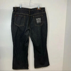 Vintage US Polo Jeans Woman Plus 24 Black High Rise Boot Leg Logo 100% Cotton