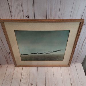Vintage US World War II Fighter Planes Flying in Formation Print. Framed and Matted w/ Glass.