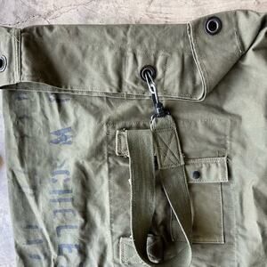 Vintage US military top load duffle bag with stenciled name. Included a Delta Air Lines tag dated rev. 1966. Bag is in good vintage condition.