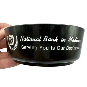 Vintage USA Advertising Ashtray- The 1st National Bank in Madison black plastic