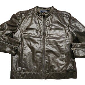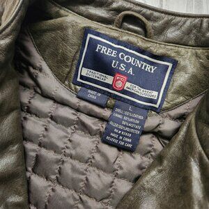 Vintage U.S.A Free Country Brown Leather Street Mens Moto Jacket Size Large
