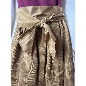 Vintage USA Gold Full-Length Skirt size 8 With Bow Waist & Textured Pattern Poly