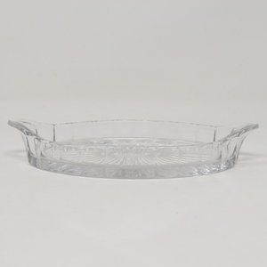 Vintage USA Heisey Glass Starburst Oval Relish Dish Clear Handle Diamond H
