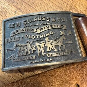 Vintage Levi's leather & brass belt & buckle w/ 2 horse logo.