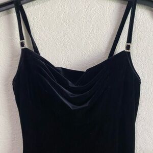 Vintage All that Jazz Made In USA Black Velvet Cowl Neck Goth Coquette Vamp Elegant Party Jeweled Strap Dress S