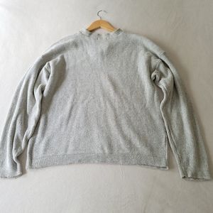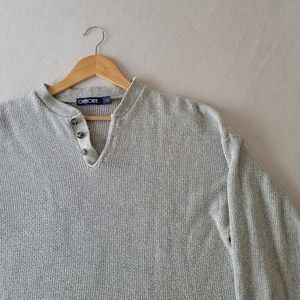 Vintage USA Made Oversized Henley Sweater Cotton Thick Knit Grey Unisex X-LARGE