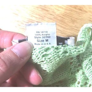 Vintage USA Notations Women's Medium Crop Neon Green Crochet Knit Open Front Car