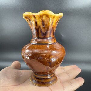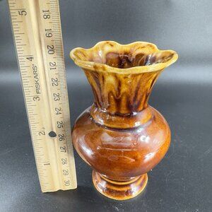 Vintage USA Pottery Bud Vase Vessel Stoneware Ceramic Vase Brown Glazed VTG