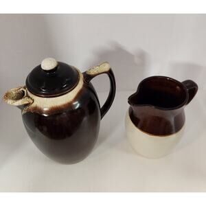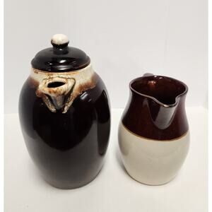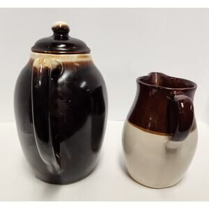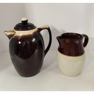 Vintage USA Pottery Pitcher Lot – Hallcraft & RRP Co. Rustic Brown Glaze