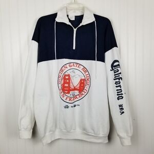 Vintage USA Sweatshirt Golden Gate Bridge Puffy Graphic 1/4 Zip Pull Over Collar