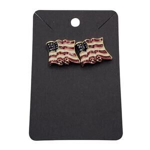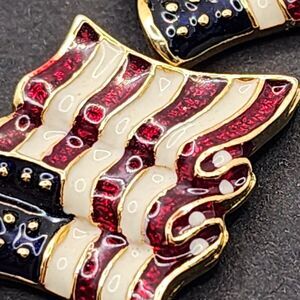Vintage USA Waving Flags Enamel Red White Blue Gold Trim Pierced Earrings