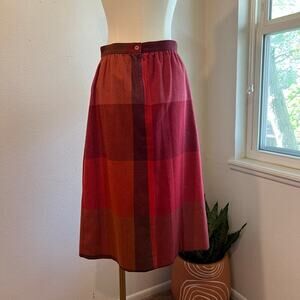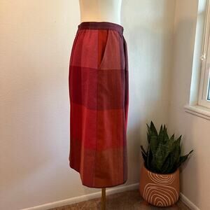 Vintage USA Wool Bright Pink Plaid Checkered Knee Length Pocket Skirt Size Small
