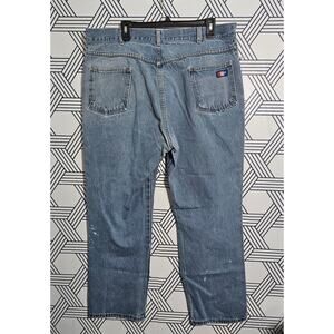 Details: Step into a standout style statement with these vintage destroyed USA Works jeans, an embodiment of the latest trends. Featuring an on-point paint splatter and smear design, these jeans exude a uniquely distressed front pocket look. Embrace the individuality of these jeans; their one-of-a-kind design ensures you won't find another pair like them. Elevate your fashion game with these trendsetting jeans that effortlessly combine artistic distressing with vintage charm, making them a must-have addition to your wardrobe