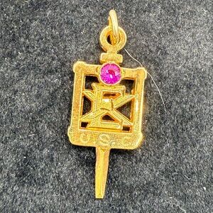Vintage USC Fraternity Key Pendant Charm – Gold-Tone w/ Pink Stone