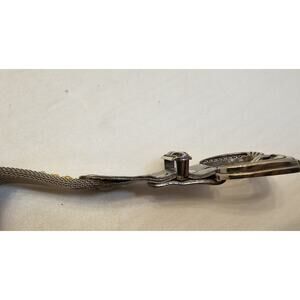 VTG USMECO Sand Castle Woven Mesh Metal Braided Studded Leather Belt w/gold Bead detail. I'd estimate it to fit a 29 inch waist or less. See pics of measuring tape. It is in good vintage condition. It has lots of life left but I love to overdisclose and make sure you know every detail. There is a bit of wear to some beads closest to the Buckle. It appears that the previous owner had a small waist and the part of the belt that goes trough the Buckle rubbed on the beads. See photos. The silver leather has minimal wear and seperation. Shoe goo is my go to for a quick fix but not necessary. Mesh is in good shape. Buckle is nice. Some of the beads have the gold rubbed off. See photos for condition details and measurements. Ask me any questions. I want you to love your purchase.