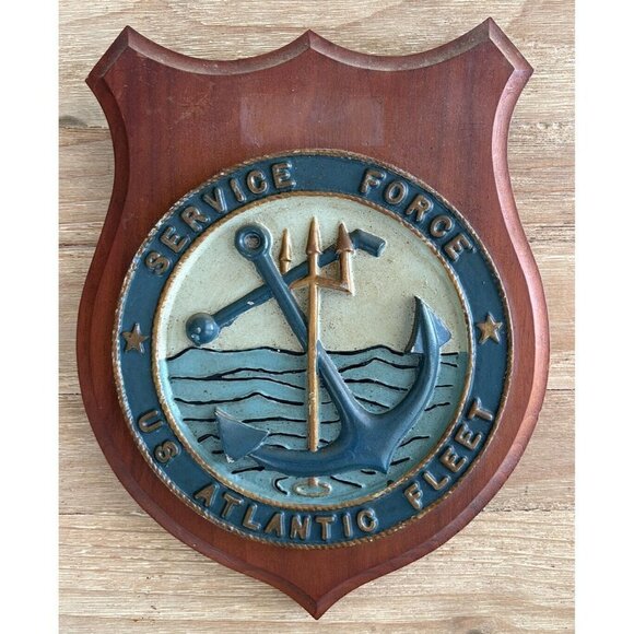 Vintage USN Navy Wood Wall Plaque Service Force US Atlantic Fleet Painted Cast
