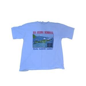 This shirt is perfect for history buffs and vintage lovers alike. It features a classic design that pays tribute to the iconic Pearl Harbor memorial. The shirt is in great condition for its age, with a soft and comfortable feel.