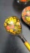 Vintage USSR Hand Made in Russia Floral Berry Gold Black Wood Spoon & Bowl Set 6