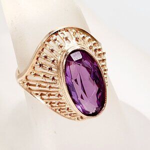 Vintage USSR Soviet Union Art Deco Alexandrite 583 Solid Rose Gold Ring 8.75