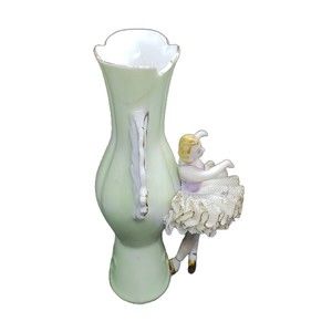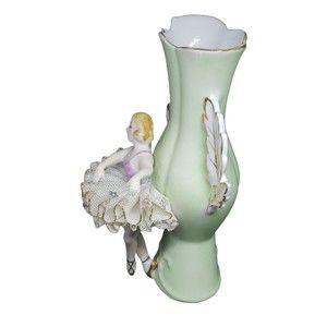 Vintage Ucago Japan Lady Ballerina Figurine Vase Green and White Lace Victorian