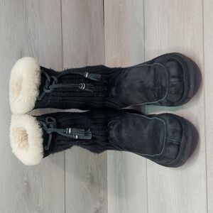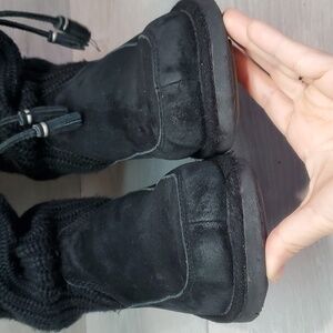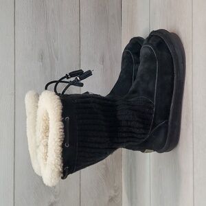UGG Suburb Crochet Knit 5124 Boots Black Leather Suede Tassel Fur Trim