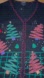 Vintage Studio Joy by Designer Originals Christmas cardigan sweater, beautifully decorated with plaid Christmas trees, snowmen, gold stars, pearls, and festive appliqués.