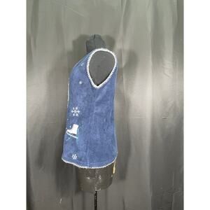 Vintage Ugly Christmas Blue Fleece Vest, Carolyn Taylor sz Small