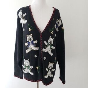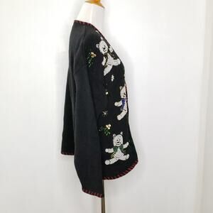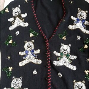 Vintage Ugly Christmas Sweater Teddy Bear Beaded Carolyn Taylor Medium