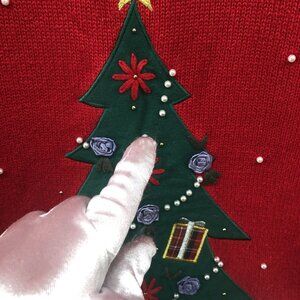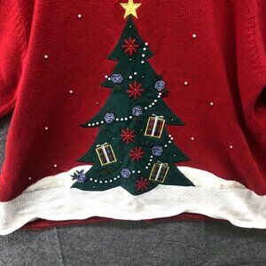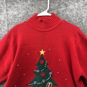 Vintage Ugly Christmas Sweater Womens XL Christmas Tree Mock Neck Embroidered