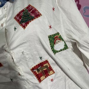 Vintage Ugly Christmas patches cute denim collar l/s buttoned down top XL
