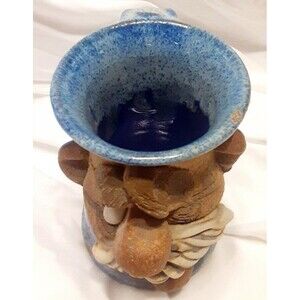 Vintage Ugly Funny Face Decorative Blue Pottery Mug 5”Tall Signed Handmade