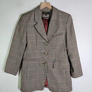 Vintage Ugo Collection Houndstooth Blazer Women's 36 4 Tan Button Front Jacket