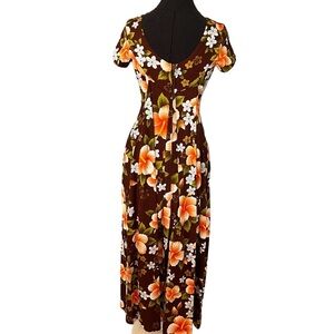 Vintage Ui-Maikai Bark Cloth Maxi Dress Hawaii Hibiscus Print Small