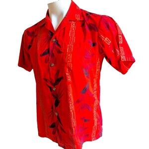 Vintage Ui-Maikai Red Made n Hawaii Tropical 4 Button TMP Shirt Sz 22x28 Cpics