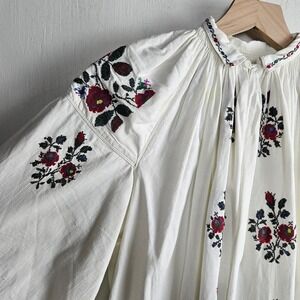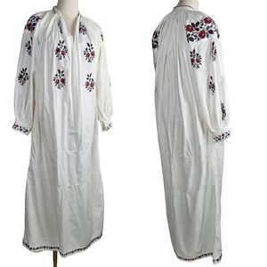 Vintage Ukranian Vyshyvanka Embroidered Dress Gown Folk Costume Peasant White