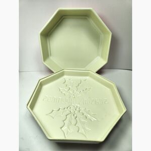 Vintage Ullman Co. “Seasons Greetings” Octagon Holiday Plastic Tin Holly