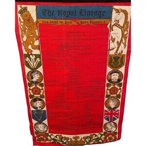 Vintage Ulster Irish Linen Tea Towel The Royal Lineage English Royal Family MINT