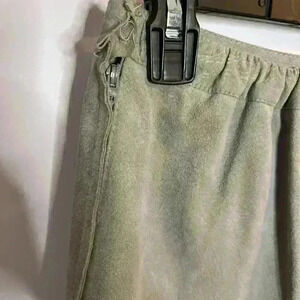 Elevate your wardrobe with this vintage suede women's maxi skirt in a beautiful gray color. Perfect for any occasion, this skirt features a solid pattern and a zip closure for a secure fit. There is a small tear in the fabric around the hook and eye closure. The elastic waist in the back make it comfortable to wear, while the slit and all-season features add versatility to the skirt.