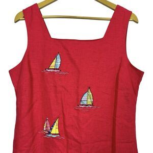 Vintage Ultra Womens Embroidered Linen Blend Sheath Dress Size 14 Red Sailboat