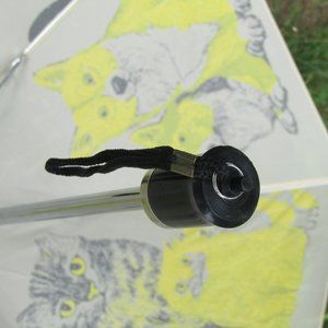 Adorable umbrella from the '70s with printed cats and dogs. It comes with a matching tote that has a zippered compartment in bottom to hold the umbrella. Great for a little girl. Never used. The main fabric is an ivory color with yellow and black print. Soooo cute!