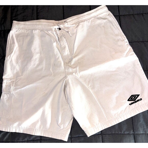 Vintage Umbro Shorts Mens Large Beige Cargo Pocket Ripstop Elastic Waist Soccer