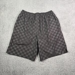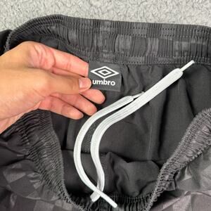 Vintage Umbro Soccer Shorts Mens M Black Checkered 9" Running Shiny Drawstring
