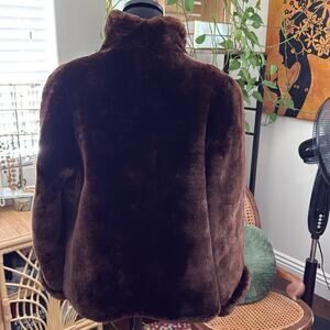 Vintage Unbranded Chocolate Brown Open Front Faux Fur Coat